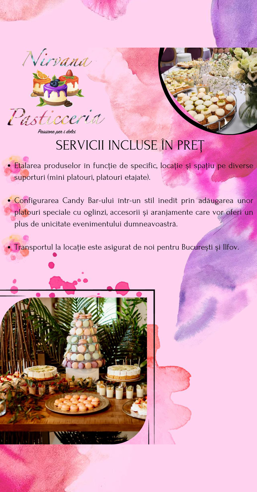 Pentru că un Candy bar cu prăjituri artizanale reprezintă un adevărat paradis dulce pentru iubitorii de deserturi speciale. Fiecare prăjitură este realizată manual, cu atenție la detalii și pasiune. Gustul inconfundabil al acestor delicii se datorează ingredientelor de înaltă calitate, atent selecționate pentru a oferi cea mai bună experiență.